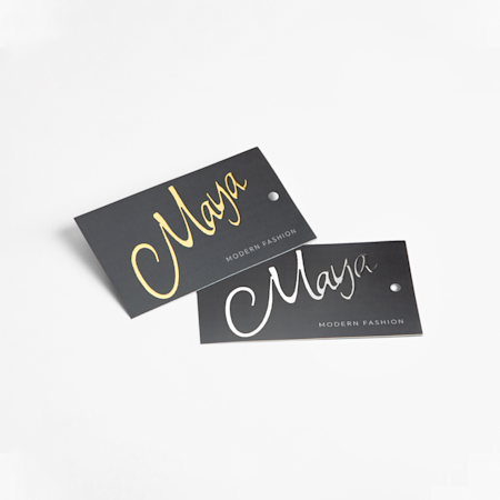 Hang tags are easy to tie to boxes, bags or clothing to show off your logo. They come in a variety of shapes, sizes and finishes (including a plastic and foil option). And with hang tag string available to add, attaching your labels to your products or bags is even easier.
